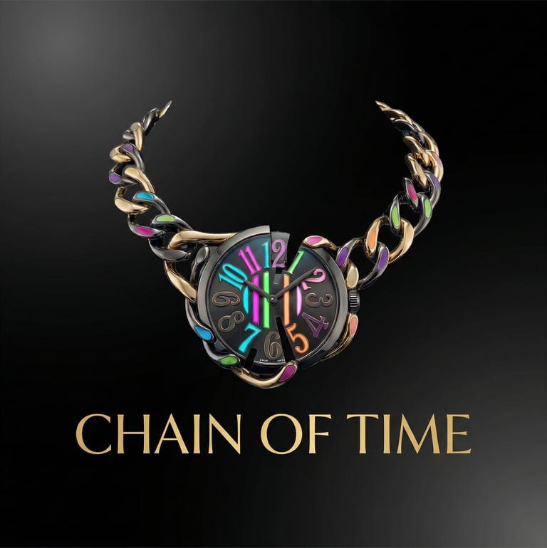 Chain of Time steht für die Erkenntnis, dass Zeit nicht nur ein flüchtiger Moment ist. Sie ist keine einzelne Sekunde, kein isoliertes Jetzt – sie ist eine fortwährende Verbindung.